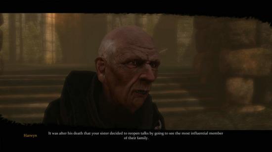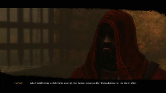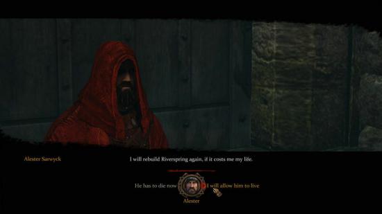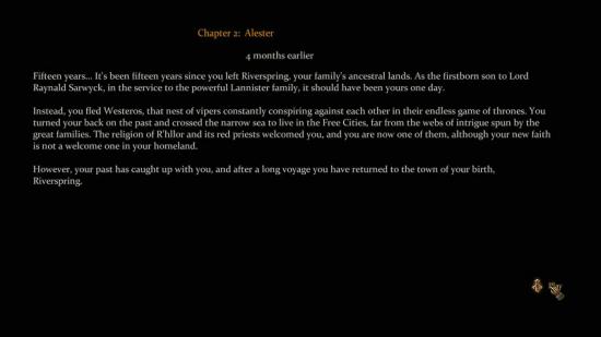 后面就是冗长的剧情对话,这里一定要都读完;对于整个游戏剧情的了解有着很大的帮助。HARWYN以RIVERSPRING的衰败为楔子,来讲述ALESTER父亲死后的权利变化