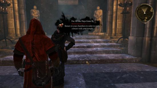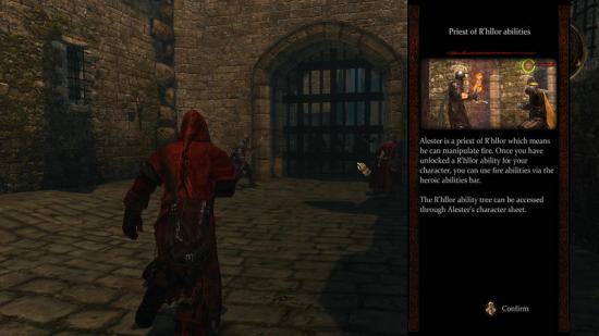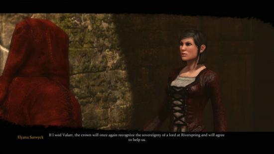 然后进入城堡核心。在城堡的大门再次遇见ELYANA,不过ELYANA根本不听ALESTER的劝告,执意认为与VALRR的婚姻可以重振家族的辉煌。进入教堂,同HAWYN主教对话