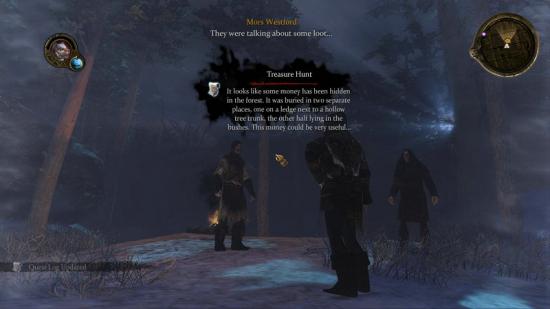 然后在南部不远的篝火队打探到这些陌生人居然在树林埋藏了一些宝藏。开启支线任务TREASURE HUNT