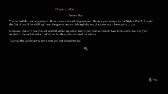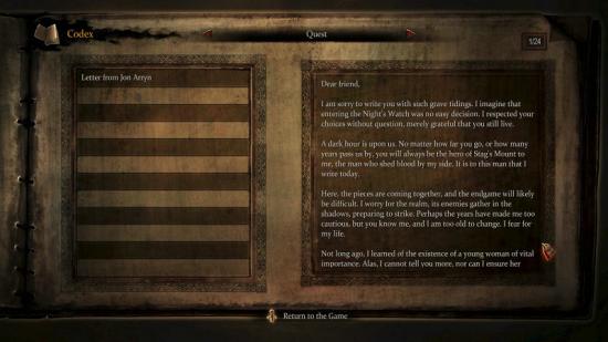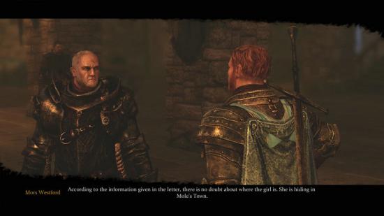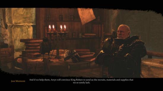 然后回到CASTLE BLACK,门口的卫兵告诉大头领JOER正寻找你的下落。进入CITY HALL的三层同JEOR对话