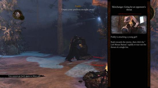 这里就是要玩家熟悉以下MORS的SKINCHANGER能力。SKINCHANGER是本作一个非常有特色的游戏系统,类同与灵魂出窍;你可以用你的虚拟灵魂快速在整个场景进行移动