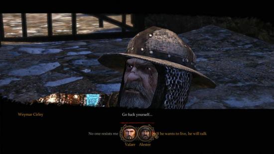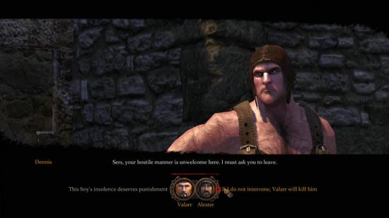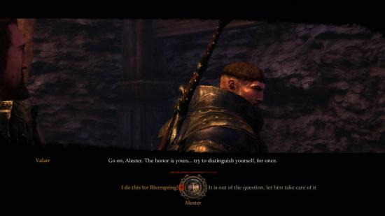 同样在对话选择方面也有两人的不同选择.ALESTER大部分的都是以和平劝说的方式解决问题,而VALARR则是通过暴力直接杀戮对方