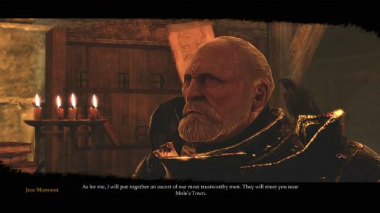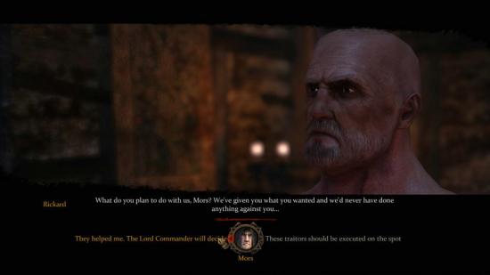 来到MOLE' TOWN森林外,就出一个不肯被收买而被围殴的NIGHT WATCH,LOTHER。LOTHER向MORS诉说了这些家伙如何收买他们企图要得到那个女孩子,并且为MORS带路,来到森林南部的一个废墟处,找到正在被收买的NIGHT WATCH和幕后的黑手