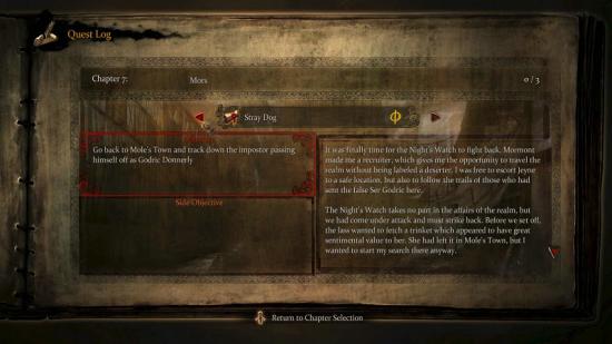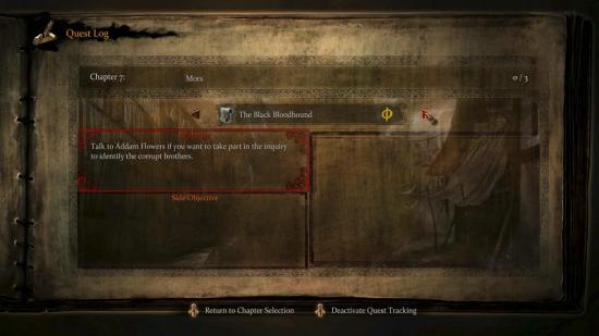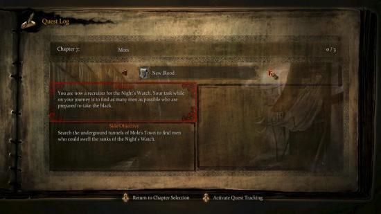 第二个任务是THE BLACK BLOODHOOD这个支线很简单,就是同新加入NIGHT WATCH几个原先GODRIC手下的叛兵对话,了解一下GODRIC的真实身份;然后回来同ADAM复
