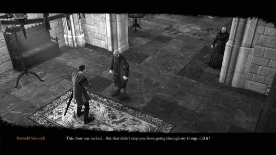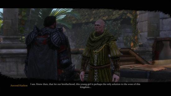 ELYANA表示毫不知情。ALESTER来到王座后的餐厅同主教HAYWN对话,HAYWN回忆起来当初父亲驱逐GAWEN的场景,回想到ALESTER父亲的起居室可能有着秘密文档的下落