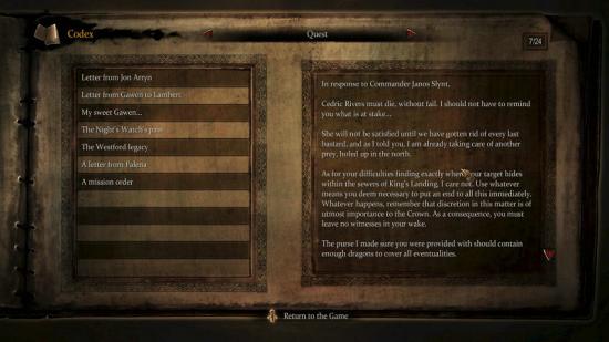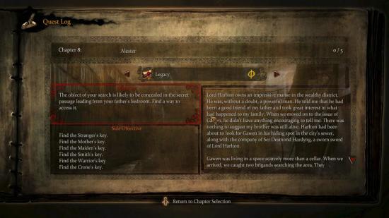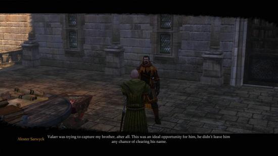 HARLTON请求ALESTER去到首都地下城的角斗场取得藏匿在一个黑暗学士手中的帝国历史传记的书,来共同研究发掘ALESTER父亲当年可能发现的秘密