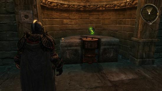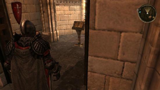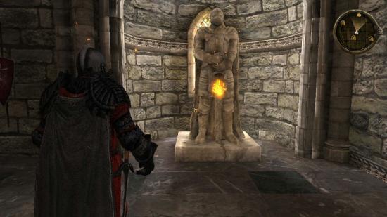 此时你需要七把钥匙才能打开后面的巨门。这七把钥匙很好找,一把你再刚才的隐藏房间找到,其他四把在整个城堡周围区域内的房间里面散落这。按R即可显示出来