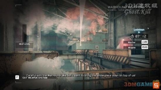 的敌人杀光后继续沿路前进,路上有个敌人的通信塔,使用机甲,按右键发射制导导弹将其破坏。