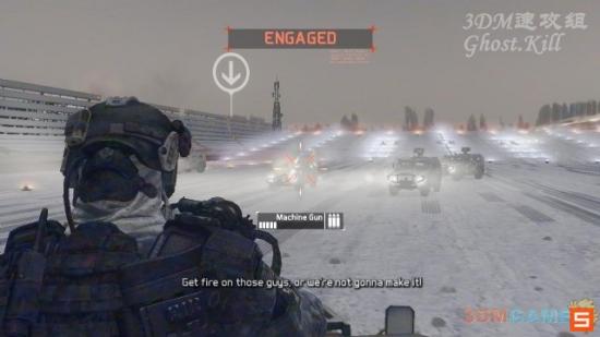 外。外面有辆悍马,上车控制机枪,一路扫射不断出现的敌人,没必要把敌人的车辆打爆,着火后就不