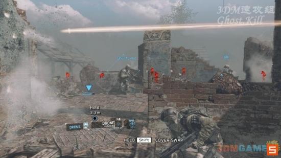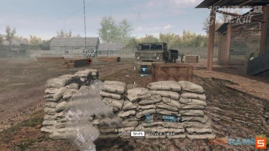 来到这个农场,刚进去的两个地点各有五个敌人,先干掉最高点的一个,再标记处决剩下的四个。