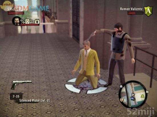 ⑧二老板Ramon Valiente(古巴):先射他膝盖再杀死。他在大型货栈附近的建筑里,攻到二层走廊换无声手枪,朝他膝盖射一枪,等他跪地再上前处决。
