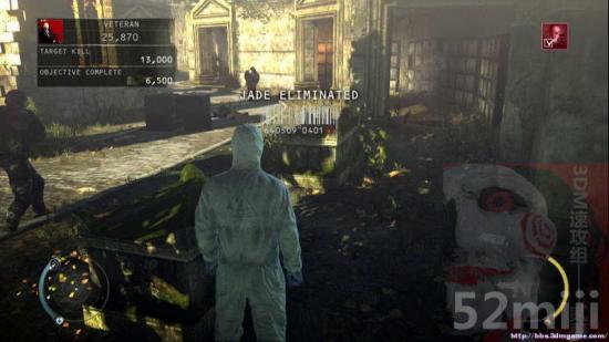 1.WOODBURN公墓前,可以先消灭一个敌人,打乱守卫的路线,穿过教堂靠右走,径直通过大门。