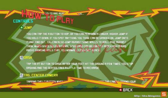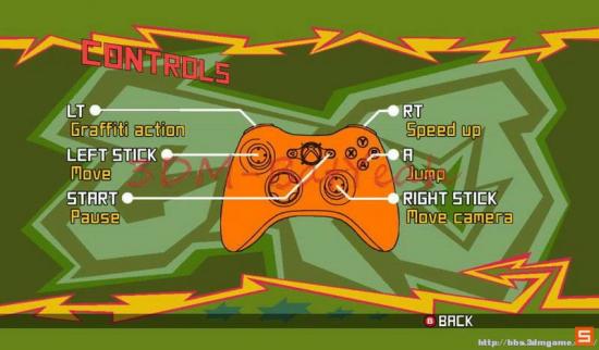 下面我将手柄的操控说明一下。左螺旋则是方向操控以及涂鸦的QTE操控,右螺旋则是调整视角.LT为涂鸦动作开启,RT为加速(很重要,某些区域特殊动作需要加速才能释放)