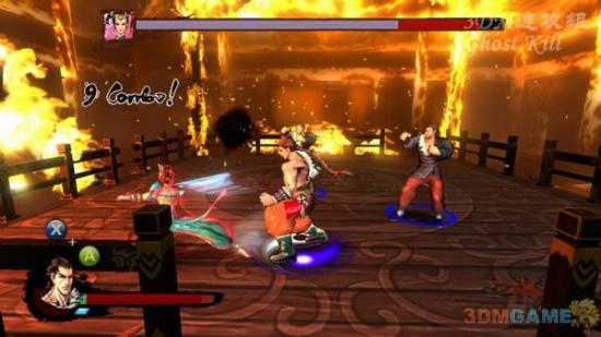 扔飞镖的杀光后会出来拿剑的BOSS,放必杀的时候要连防四下,能直接用吸血必杀破掉更好,一举两得。快干掉的时候会来拿剑的杂兵,跳起来飞踢比较好防,用剑攻击时也要连续防守才行。杀光后就是乱斗了,接下来BOSS杂兵一起成群的出,能叫小弟就叫小弟,然后按照之前的打法慢慢打吧。