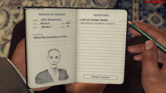 前往Evestrom Residence与Mrs. Evestrom进行询问,以上图的顺序:3-1 第一个问题(Faberge Cigarette Case)