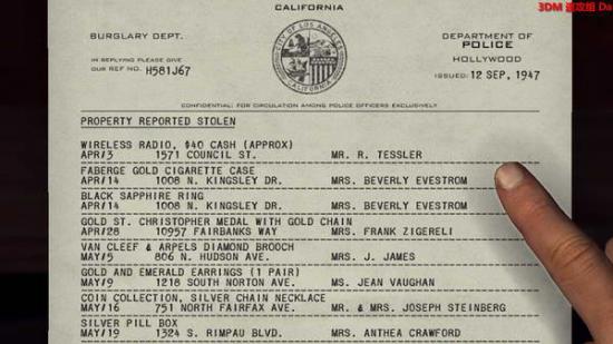 走进警局和柜台对话可得到赃物名单,指着上图的位置即可