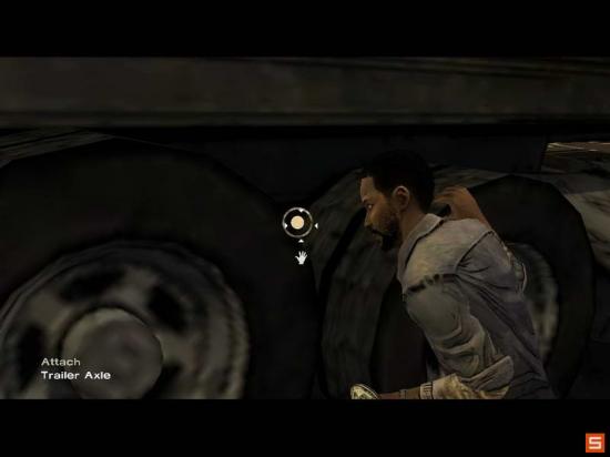 可以自由行动后,来到另外辆车前,点这里,拉出车的牵引线。