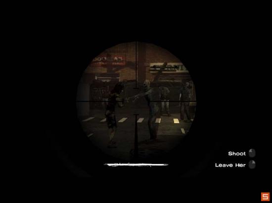 中途女性被咬了,玩家需选择要不要帮女士结束生命,笔者选择了不开枪