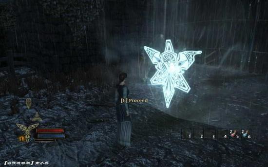离开酒店,路边有装备店和物品店,先开始没什么钱,没必要去看了,直接按[E]触摸光圈,踏上旅途。