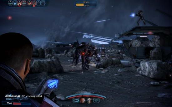 3:碰到了老朋友GARRUS,他是战斗天才;特别是远距离的狙击,后期必带的人物(当然,你也可以全带妹子······)。然后和他一起前去清光这里的敌人,途中最难对付的是一些BRUTE:护甲很高、血厚、伤害高、近战冲锋型。在最后的基地有一把离子枪,一枪就能解决一个BRUTE;还有一个可以拉开距离,使用手雷,并控制队友使用破甲弹杀之。(左边蓝MM的技能是浮力球,右边好基友的技能就是破甲弹)