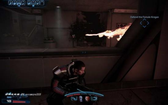 3:来到SUR'KESH,正在谈话间塞普鲁斯组织又前来凑热闹,显然他们也得到了消息,并不想Shepard壮大。这里按V键提示一步步打过去,这里的装甲兵比较多,都用基友的破甲技能;由于前面在飞船的5层升级了好几次武器,现在打这些敌人很简单。有些地方需要你使用梯子上去,最后会出来一个装甲兽;拉开距离,手雷,破甲;期间消灭出来的敌人。