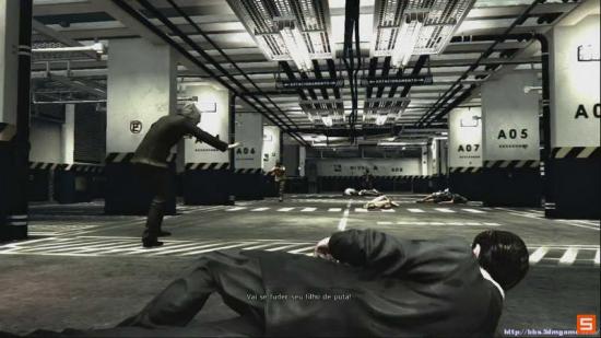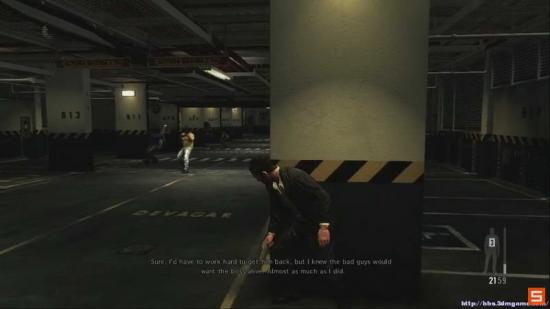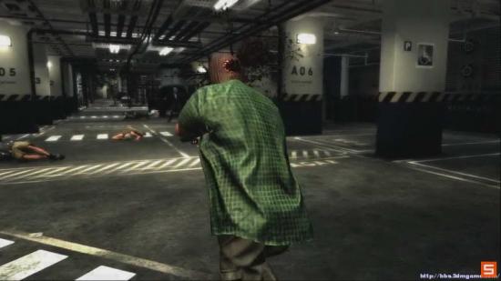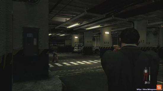 继续前进 来到停车场 这里需要消灭4个敌人 多利用走位 和子弹时间 轻松解决 但是注意 不要猫在掩体太久 敌人会冲过来哦