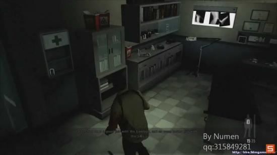 等敌人走后 或者消灭后 回到医务室 墙上医药架上有一瓶止痛药(不拿也没关系 因为本关后面的止痛药很多)