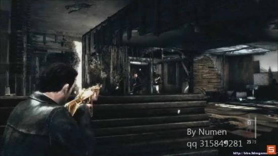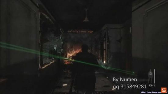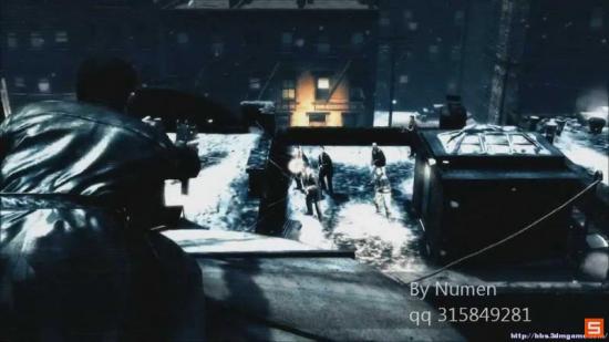 剧情过后 走廊里出现3个敌人 还有窗外N多的镭射瞄准线 果断点 直接从掩体出来 一开始敌人是背对我们的 可以从容的把他们爆头