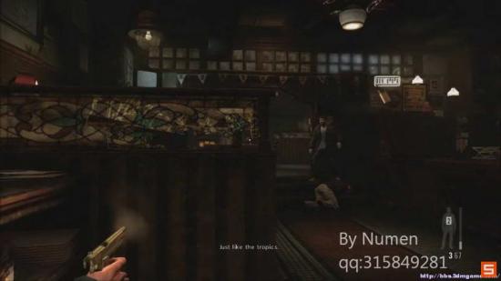 技巧提示:看到了掩体上方的那块花玻璃没有 那个是可以打碎的 然后像图中那样透过玻璃瞄准射击 可以确保无伤 本作中还有很多类似的窍门 当然 这种技巧只是给吾等苦手用的 高手请无视