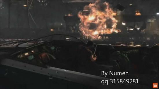 上船后,快速打爆后面追来的敌船,虽然子弹无限,但连发枪会过热,并降低命中率,推荐快速点射