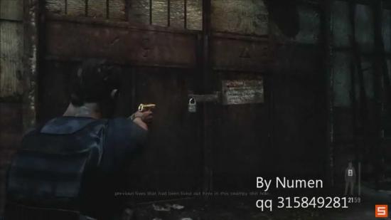 一路前进走到这里 用带消音器的手枪射掉门上的锁