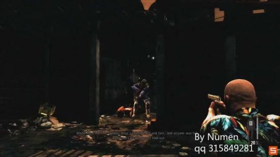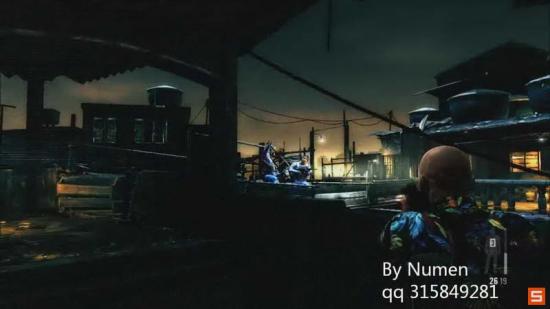 用爬的,到这里后,子弹时间干掉最近的2人,之后打爆房间前的气罐