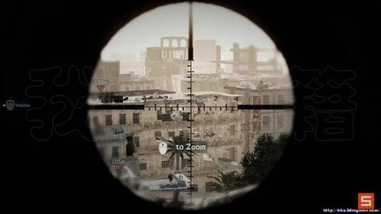 最后则是高台狙击。你第一轮要消灭所有红色指示的RPG发射手,机枪手可以不管(后面会有武装直升机对付他们)。第二轮你需要消灭最远处高塔突然出的两个RPG发射手,由于此时已经出现了一个直升机,而且她会自动干掉塔顶上的那个炮手,所以你只需主要狙击下层的炮手就可以了
