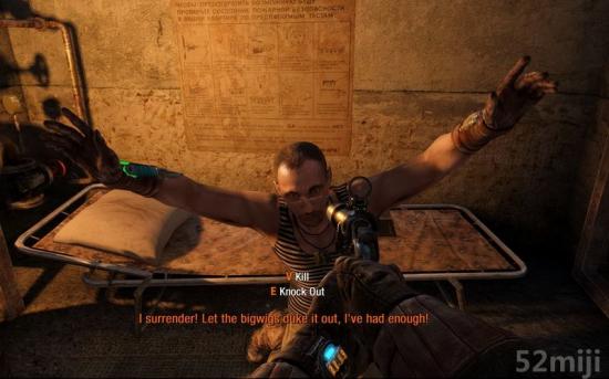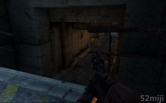 此时可以不用开枪进入房间击昏此名敌人,搜刮战利品后进入机房通风管前进