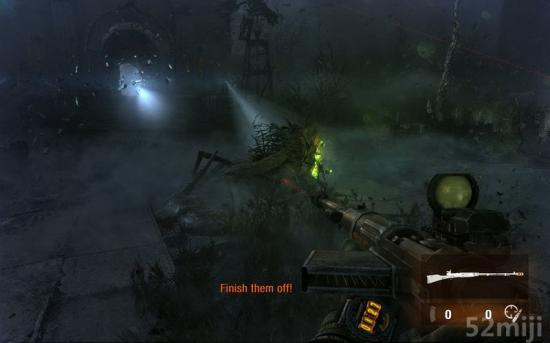 从船上下来后进入建筑左上残骸(注意绊绳),推门进入后会听到队友叫我们快点赶过去,在右侧可以拿到夜视仪