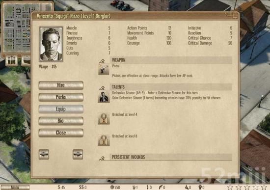 人物的主界面之下,玩家可以进行技能的升级,装备的根环,解雇/雇佣等一系列人物选择。