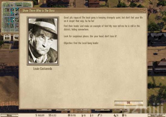 这一关大体的任务流程如下。首先建设Protection Racket,并且将你的HIDEOUT提升到2级。HIDEOUT到经营后期一定要升到最高级,因为该建筑物不仅仅可以提供额外的空间,而且还可以提升你控制建筑物的生产效率和建造成本。