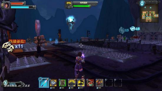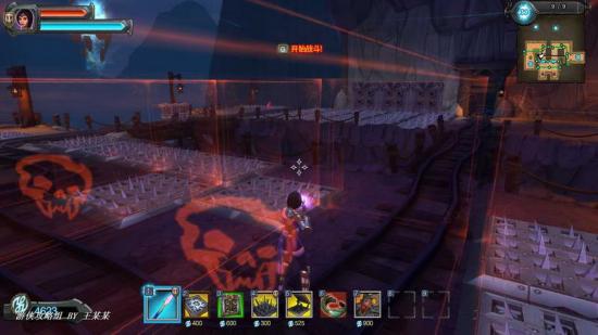 到了第三波开始不固定出怪,我们的站位就不要靠前,站在两条通道的中间,有一辆箱车通过的地方(参考下面的截图有标记),由于站位有限制性,所以要先打弓箭手,以免自己受伤。