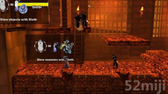 后面的部分很简单了。一个简单的技能组合应用。使用SLOTH减缓移动的平台;之后用WRATH撞击机关;然后快速跳上缓慢移动的平台取得左边的水晶球,从而开启下部的机关点