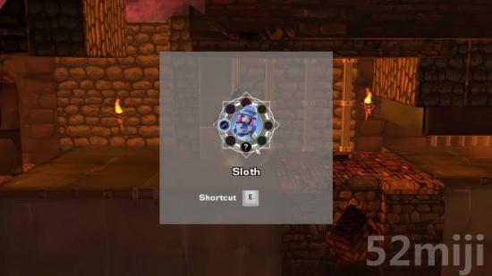 SLOTH,攻击力很弱很弱的角色,但是后面很多地方解开机关的关键人物。 该人物会释放一个恶魔体,并且按照指示击中区域内所有目标。对于击中的机关或者普通物件,则是永久性减缓其动作;而对于击中敌人,则是暂时性的减缓其攻击速度