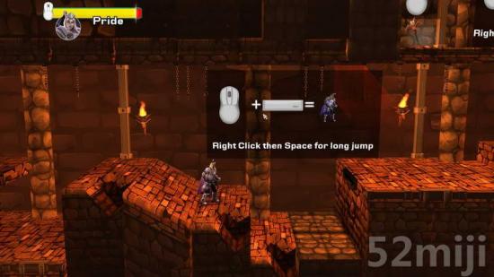 PRIDE的一个比较重要的特技就是冲刺跳跃;SPACE+鼠标右键组合即可释放。该技能在后期是比较重要的,尤其是跳跃较宽区域的障碍之时,玩家需要释放该技能来跳到较远的高处