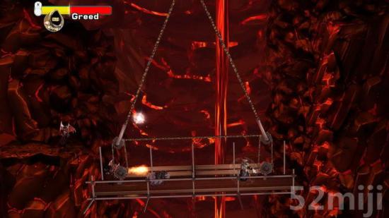 之后则是一段生存战。随着平台缓慢下落玩家需要消灭两边出现的敌人从而到达最下部。整个战斗流程会出现不少的血球和护盾,注意捡取