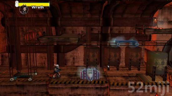 本BOSS的对付策略建议如下。BOSS进行冲刺阶段之时,使用GREED站在最高层,勾住两边的挂钩来回跳跃躲避BOSS的冲刺
