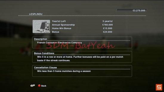 之后则是赞助商。不同于其他足球经理游戏,这里的赞助商是需要你达成一定条件才会发放奖励额,如果任意条件不满足的话则会大幅度的减少奖励