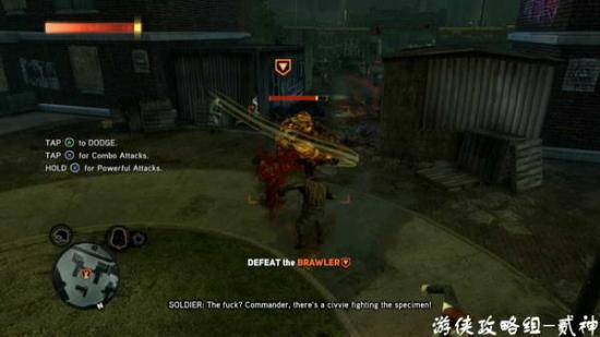 出现brawler 嗜血者,实践攻击手段,多利用QTE躲避,吸收后获得爪刃技能—学习拾取武器攻击坦克