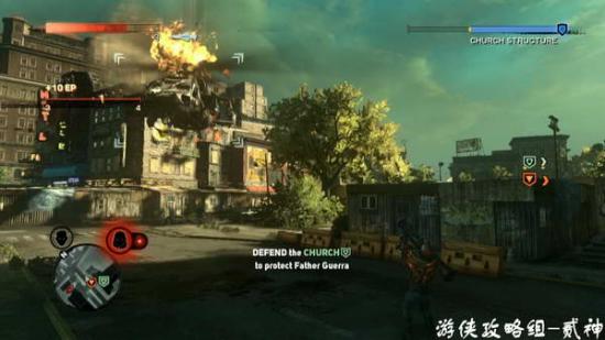 保护教堂清除周围一切目标-通过跳上载具,获取炮台消灭坦克-如法炮制消灭周围的坦克和直升机
