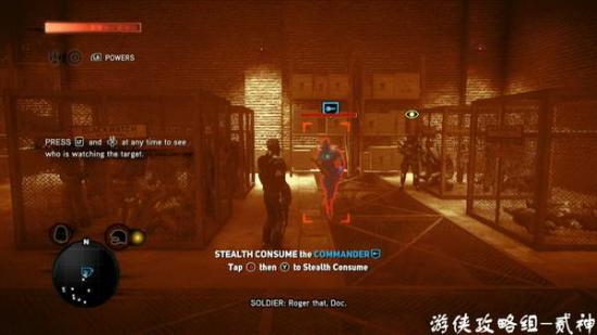 副线任务教学。热扫描定位吸收目标—开门潜入—吸收看门人—不触发警报,吸收任务目标