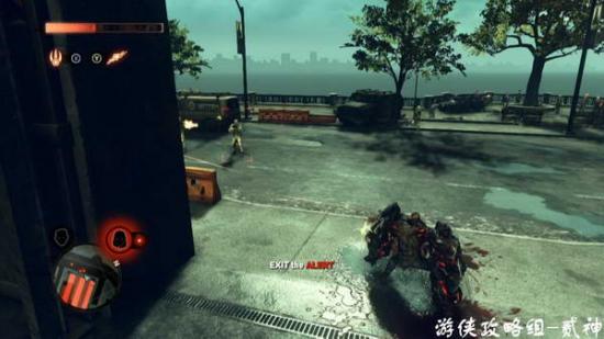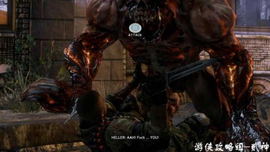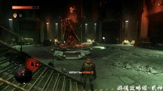 开门潜入后出现hydra 触手怪,不要上去硬拼,用周围的火箭筒移动射击,注意躲避重击和旋风斩,吸收后获取触手技能
