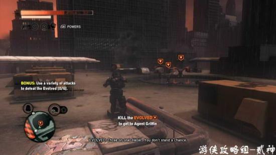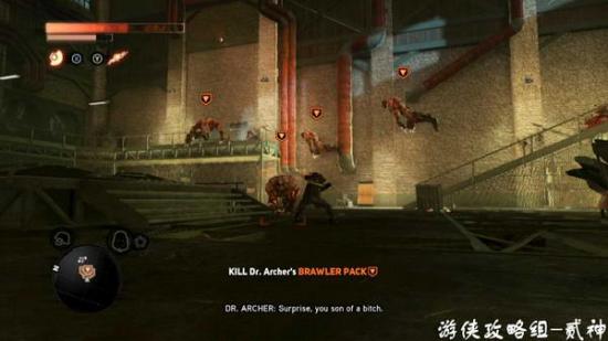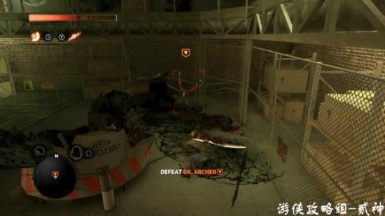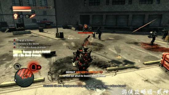 吸收看门人潜入-任务目标摧毁4个气罐,爆炸后如果距离过近会被毒死,将生化炸弹植入罐子周围人体内,迅速跑开即可,或者用火箭筒远距离破坏-总算出现比较有难度的BOSS了,DR.Archer,能量盾能抵御其一切攻击,防反、闪避即可;P2阶段招出2个嗜血者,BOSS不参与战斗,消灭后回到P1;P3阶段招出4个嗜血者,注意多跑动逐个击杀,吸收回血-消