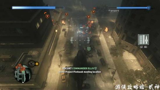 热扫描吸收驾驶员上直升机-跟随导航机一路消灭敌人-随后单人作战,清理地面上的大量触手怪,记得用导弹反击投掷物(屏幕会有按键提示)-随后保护坦克,看好坦克和自身的血量,继续清理触手怪和嗜血者(一路上会有很多,记得弹药冷却集火一个,操作不熟练,多死几次习惯就好了)-到后面触手怪会越来越多,不要管坦克,逐个消灭即可-最后吸收几个标记的目标,过关
